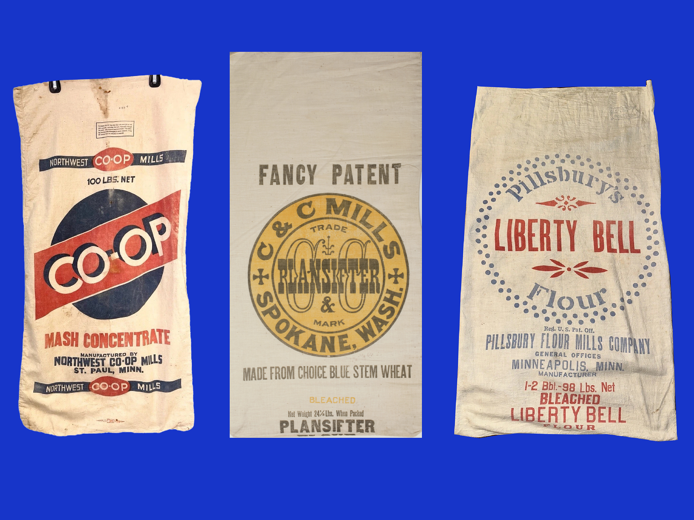 Northwest Co-Op Sack | C&C Mills Plansifter Flour Sack | Pillsbury Flour Sack