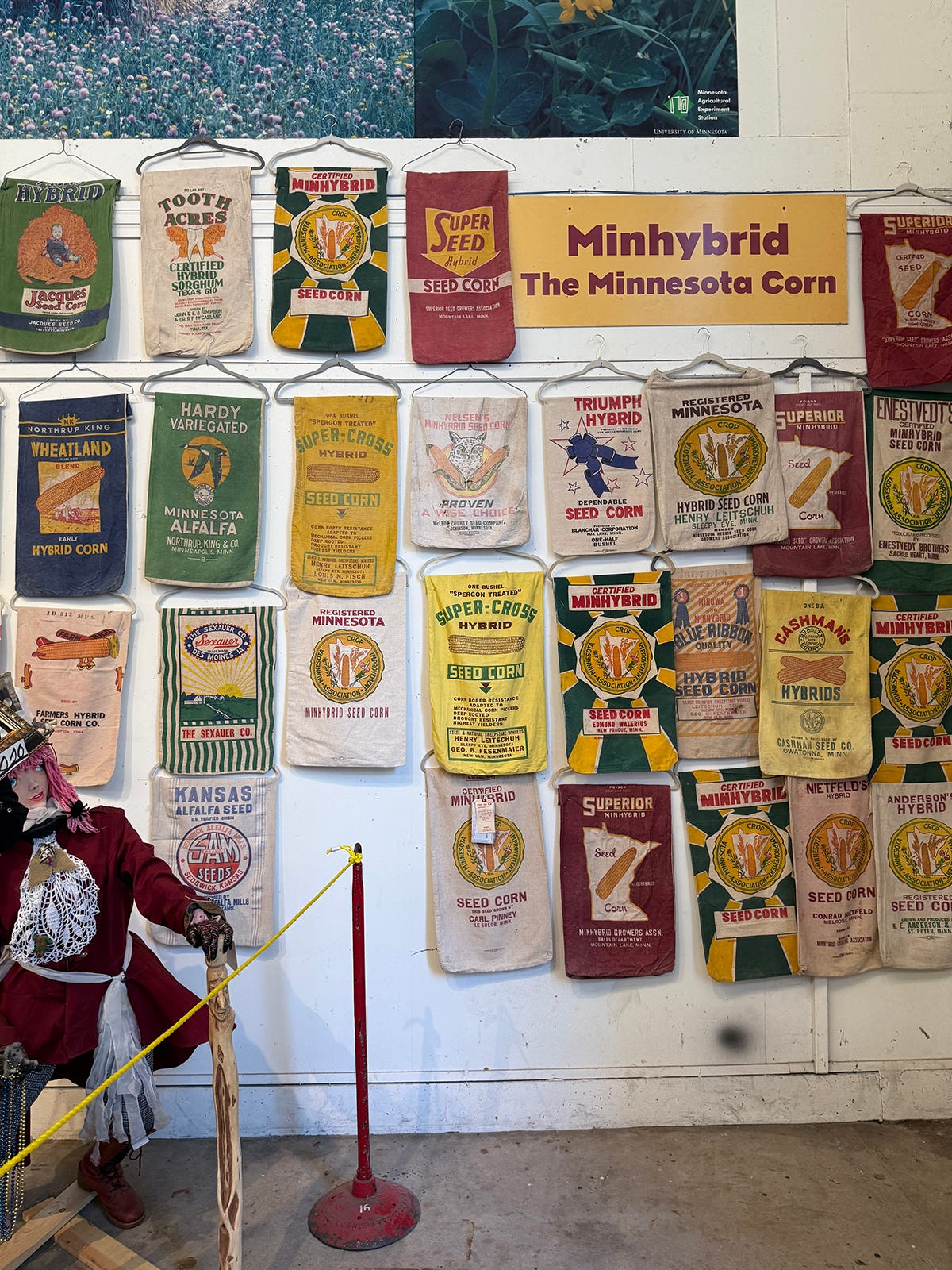 There was no information displayed about this collection so I googled it when I got home. The collection is owned by my fellow Minnesotan in arms, Ron Kelsey. Here’s a little vid that shows a peak at his collection and a couple fun facts about the history of feed sacks. It’s from PBS and very wholesome.