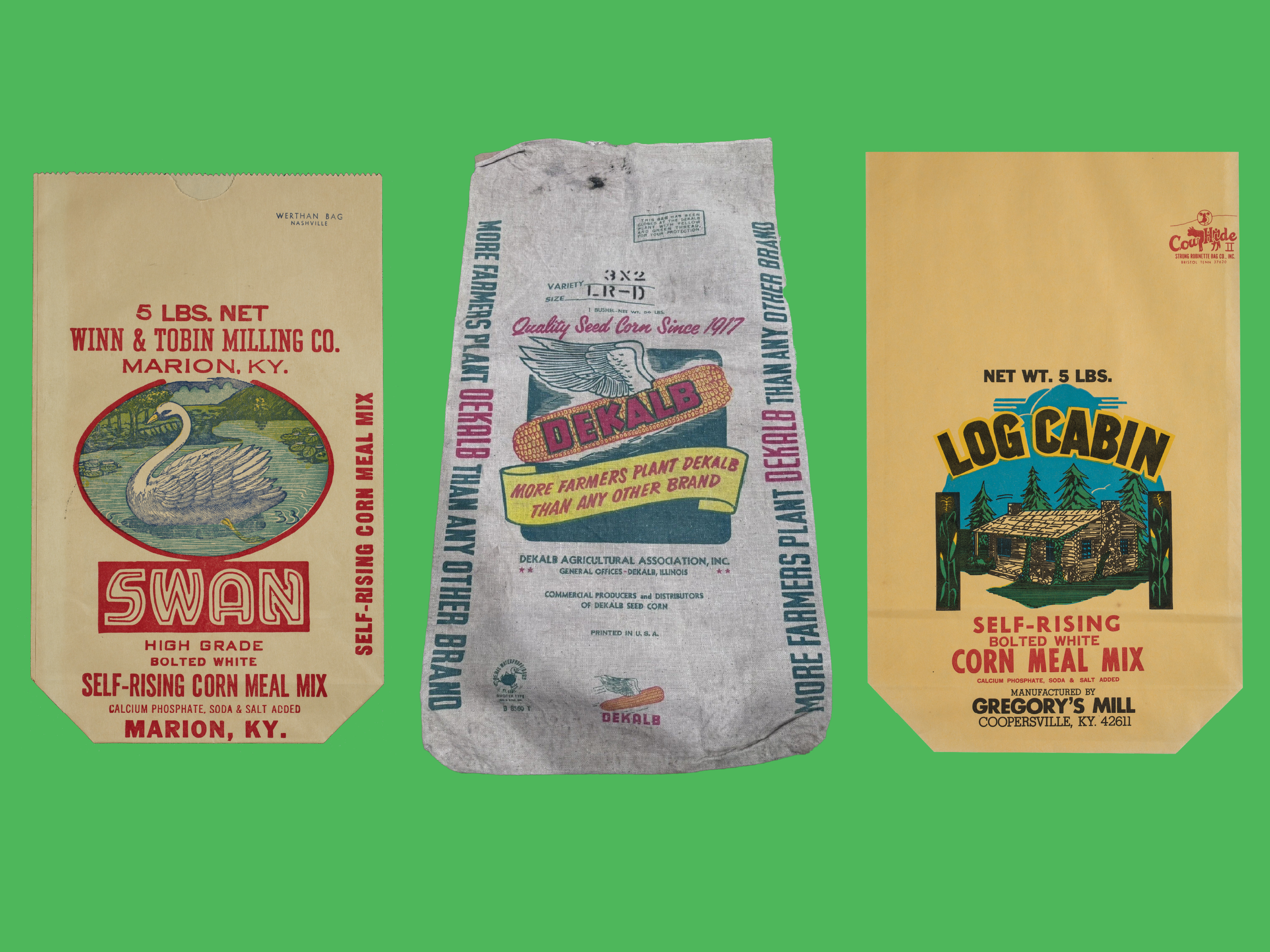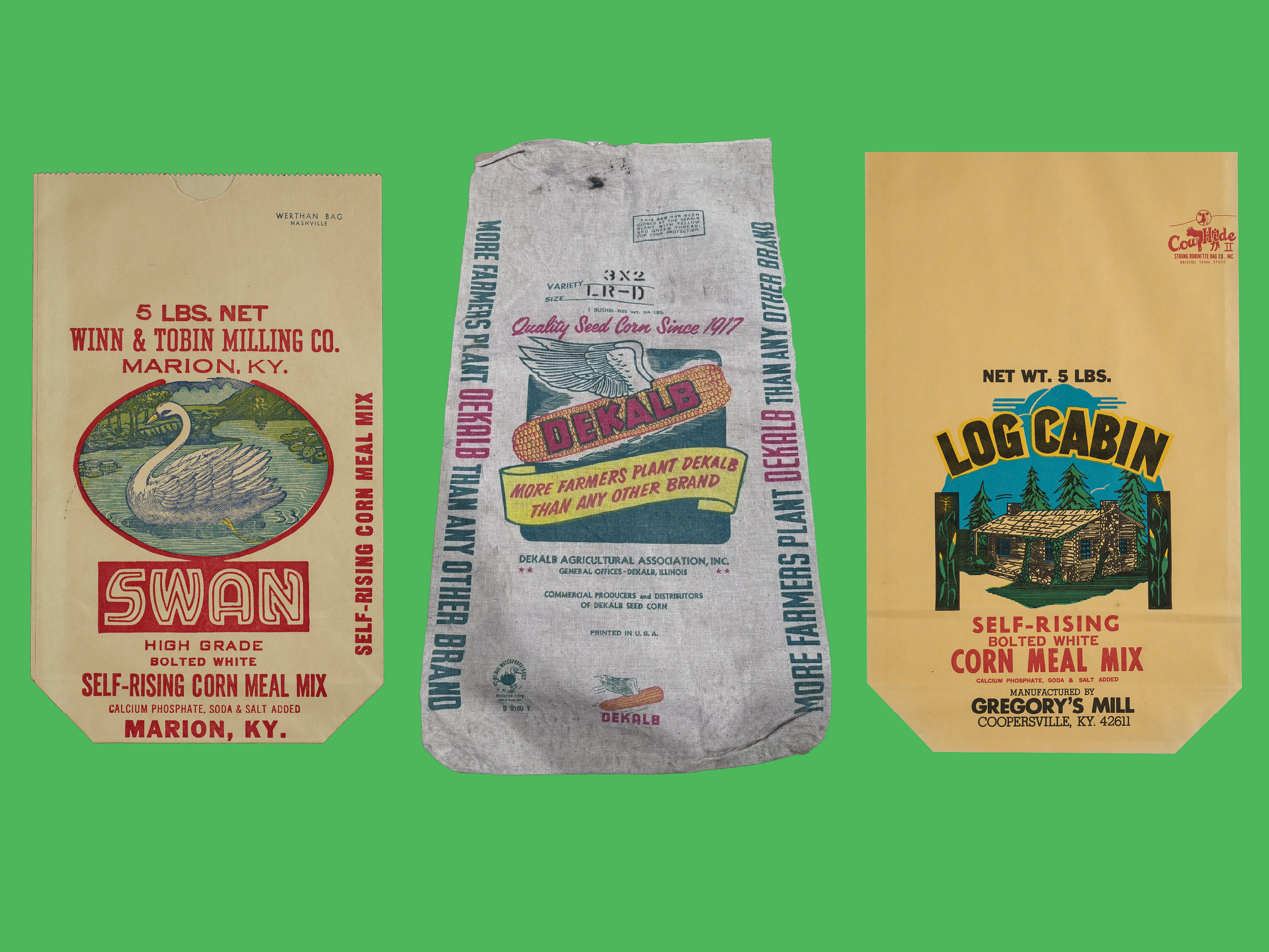 Swan Corn Meal Bag | Dekalb Corn Feed Sack | Log Cabin Corn Meal Bag