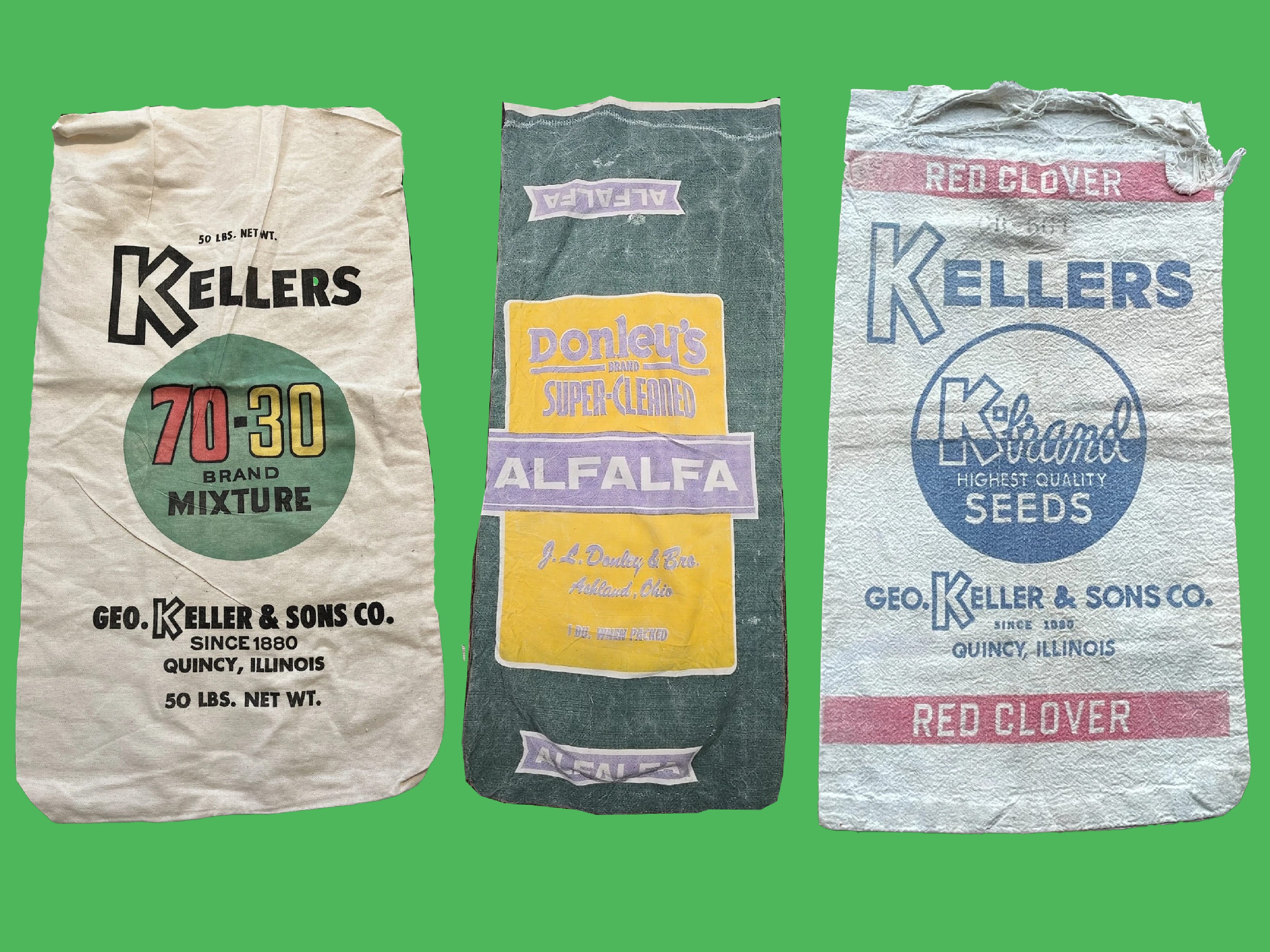 Kellers 70-30 Feed Sack | Donley's Alfalfa Sack | Kellers Red Clover Sack