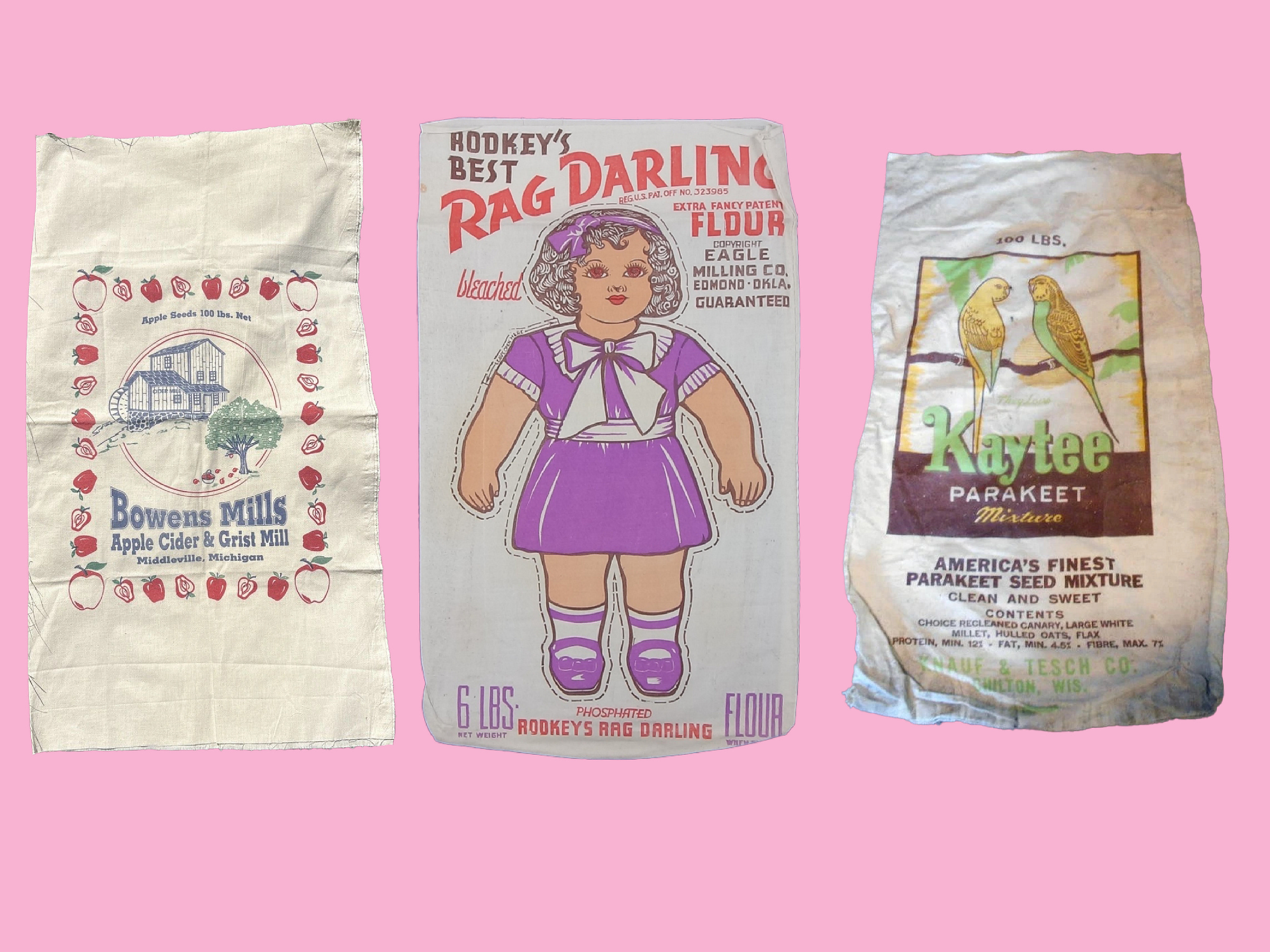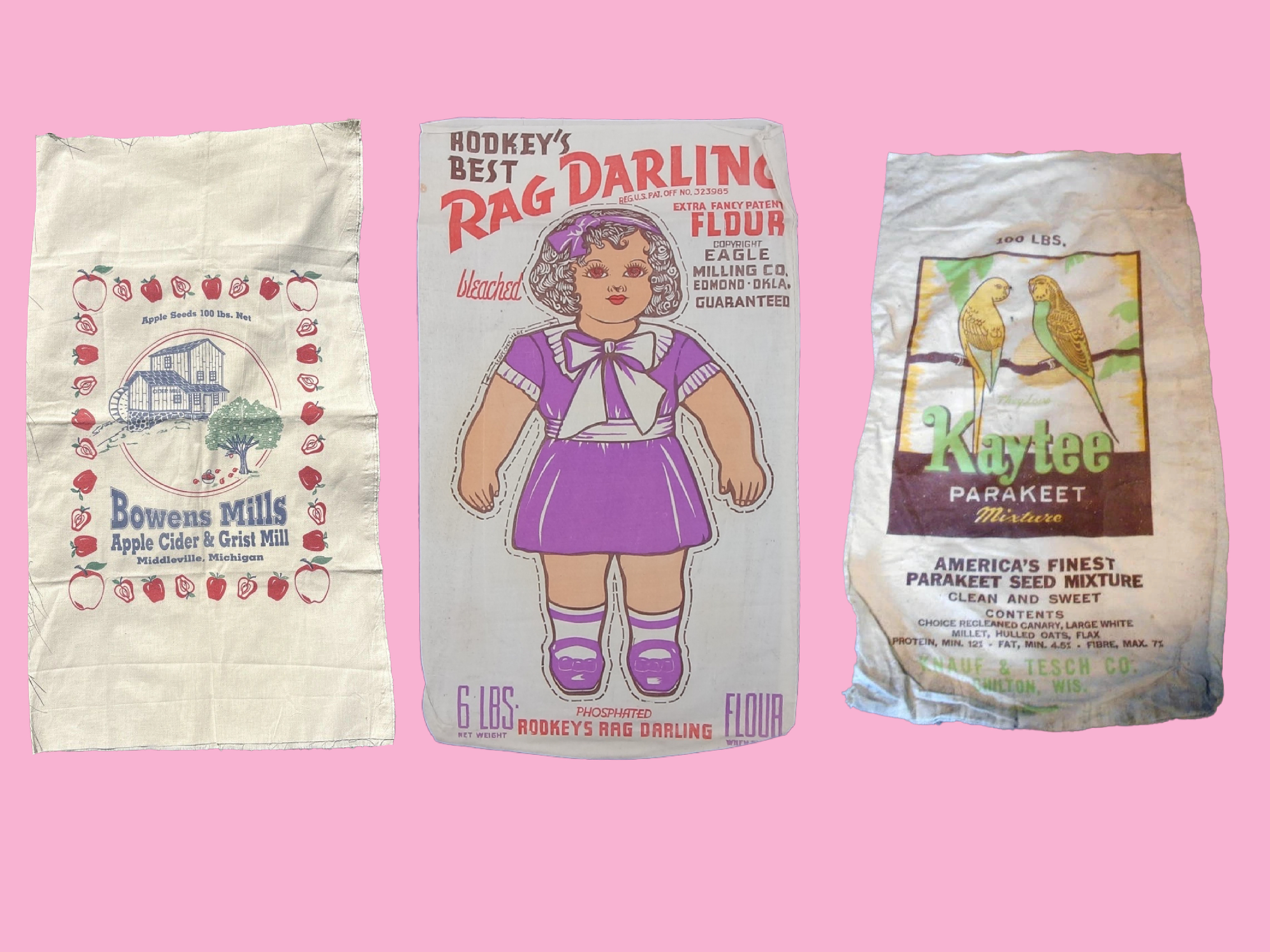 Bowens Mills Apple Cider Sack | 'Rag Darling' Flour Sack | Kaytee Feed Sack
