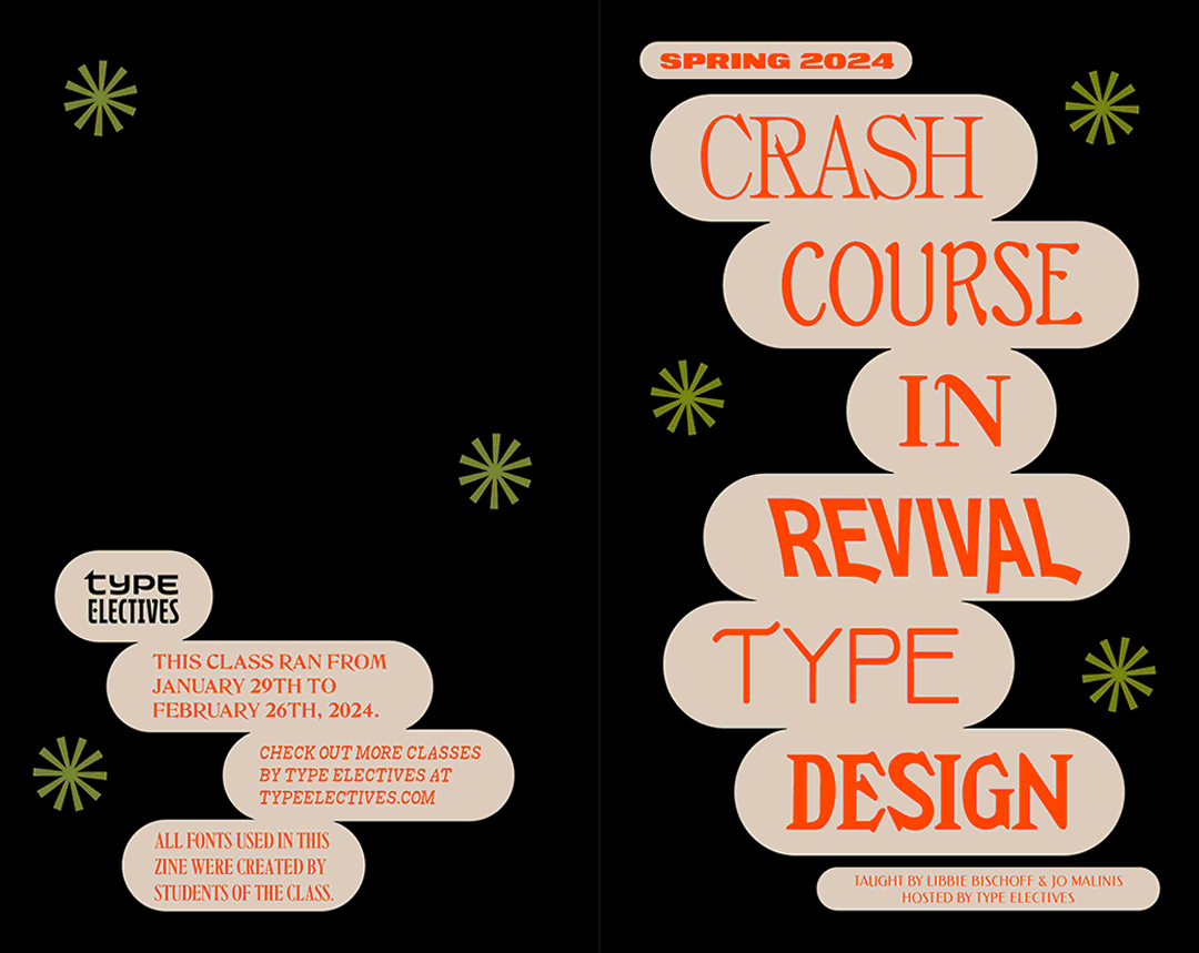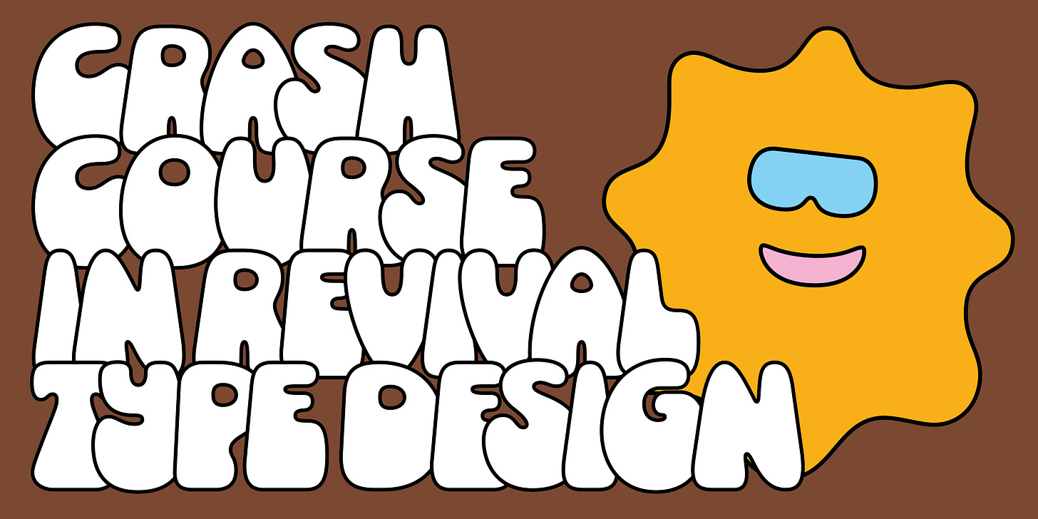 May I present another Crash Course in Revival Type Design! The class starts Tuesday, July 23rd, and ends on Tuesday, August 20th. It’s from 6pm-8pm EST. It costs $350.